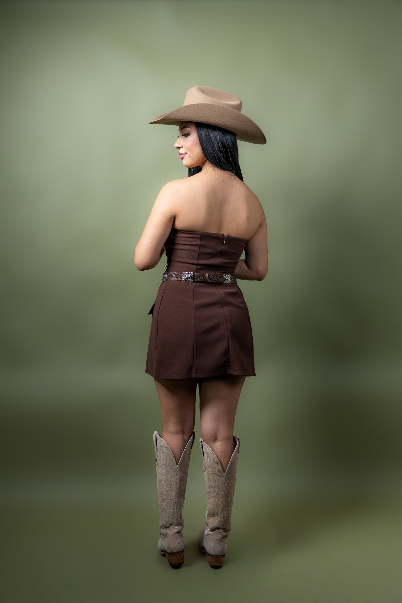 - Details: Includes two subtle, tailored pocket details on the front skirt, adding a touch of structure and utility to the design.